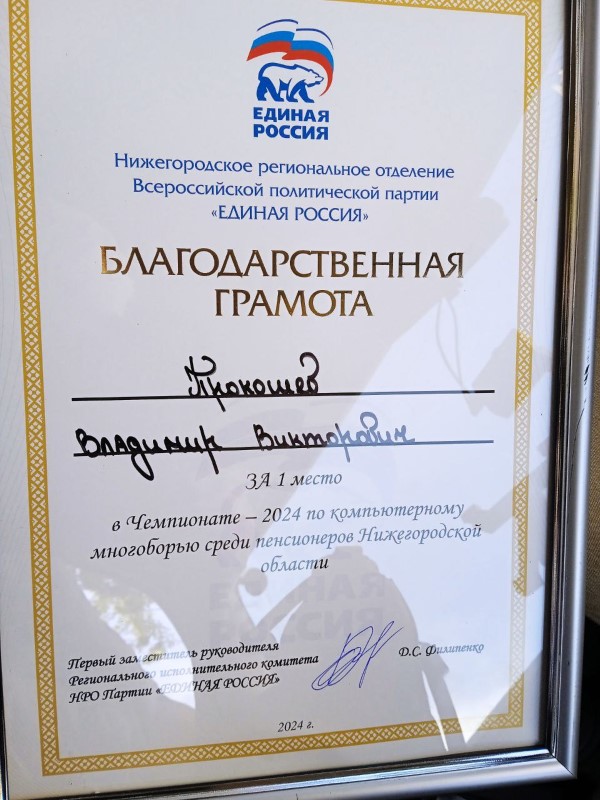 По итогам соревнования представитель Краснобаковского муниципального округа Прокошев Владимир Викторович занял 1 место среди множества участников и награжден Грамотой победителя. Поздравляем!